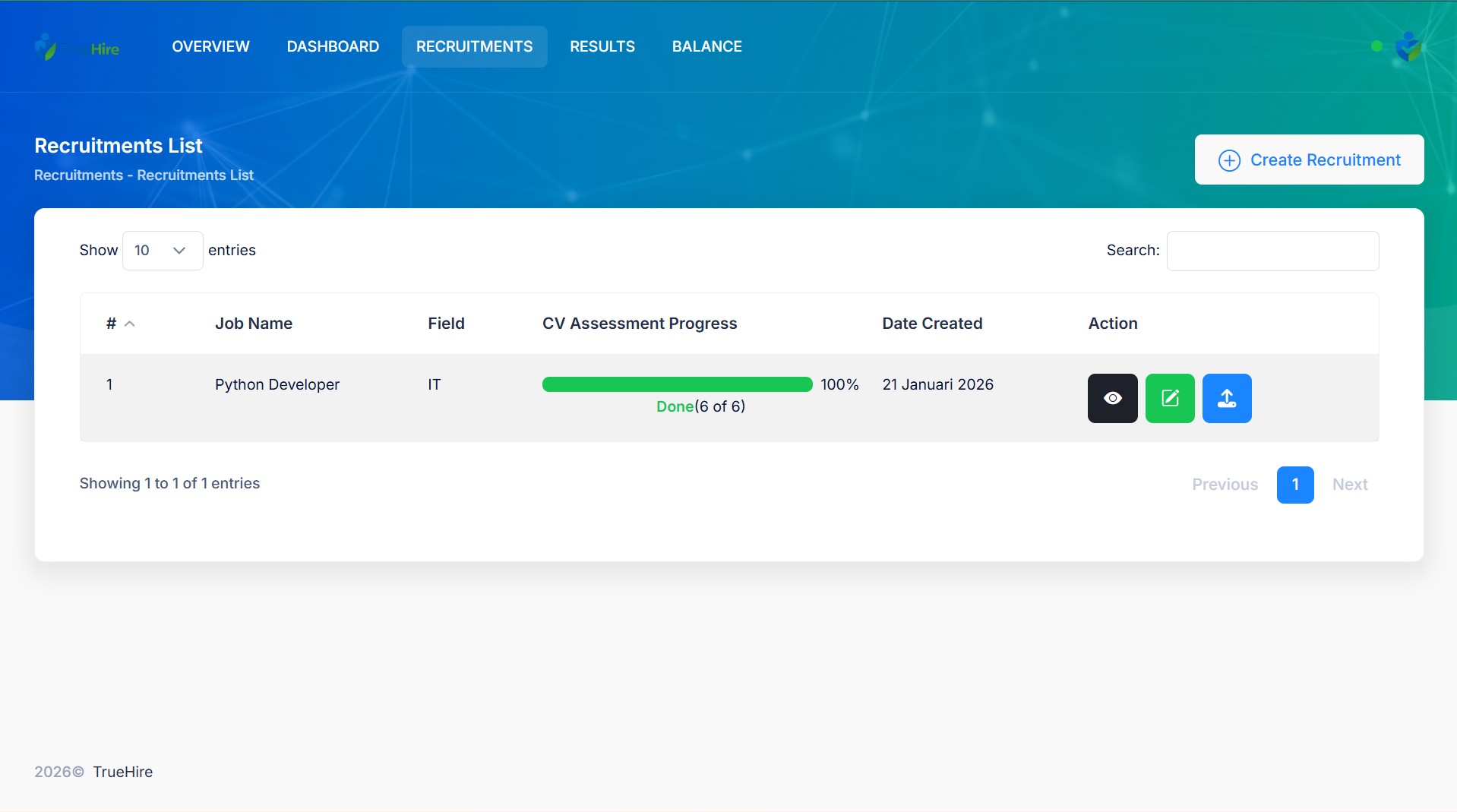 Can access the dashboard page which contains information related to your company's recruitment